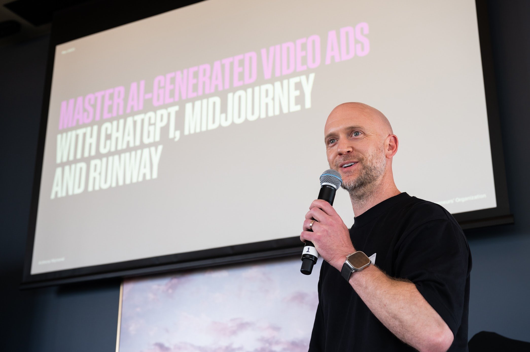 Finally, Anthony was up and he rocked the room showing how tools like ChatGPT, Midjourney and RunwayML are transforming marketing functions and workflows. He brought to life real use cases showing how to create an AI generated ad in a matter of minutes. Impressive stuff.