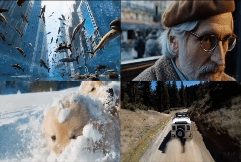 By way of comparison, providing RunwayML with the exact same Labrador prompt, creates an underwhelming result. With just 4 seconds of video (Runways default) and a lack of any real motion (just some snow falling), it’s adherence to the prompt is far from good, note no heads “popping out of the snow” as requested in the prompt.