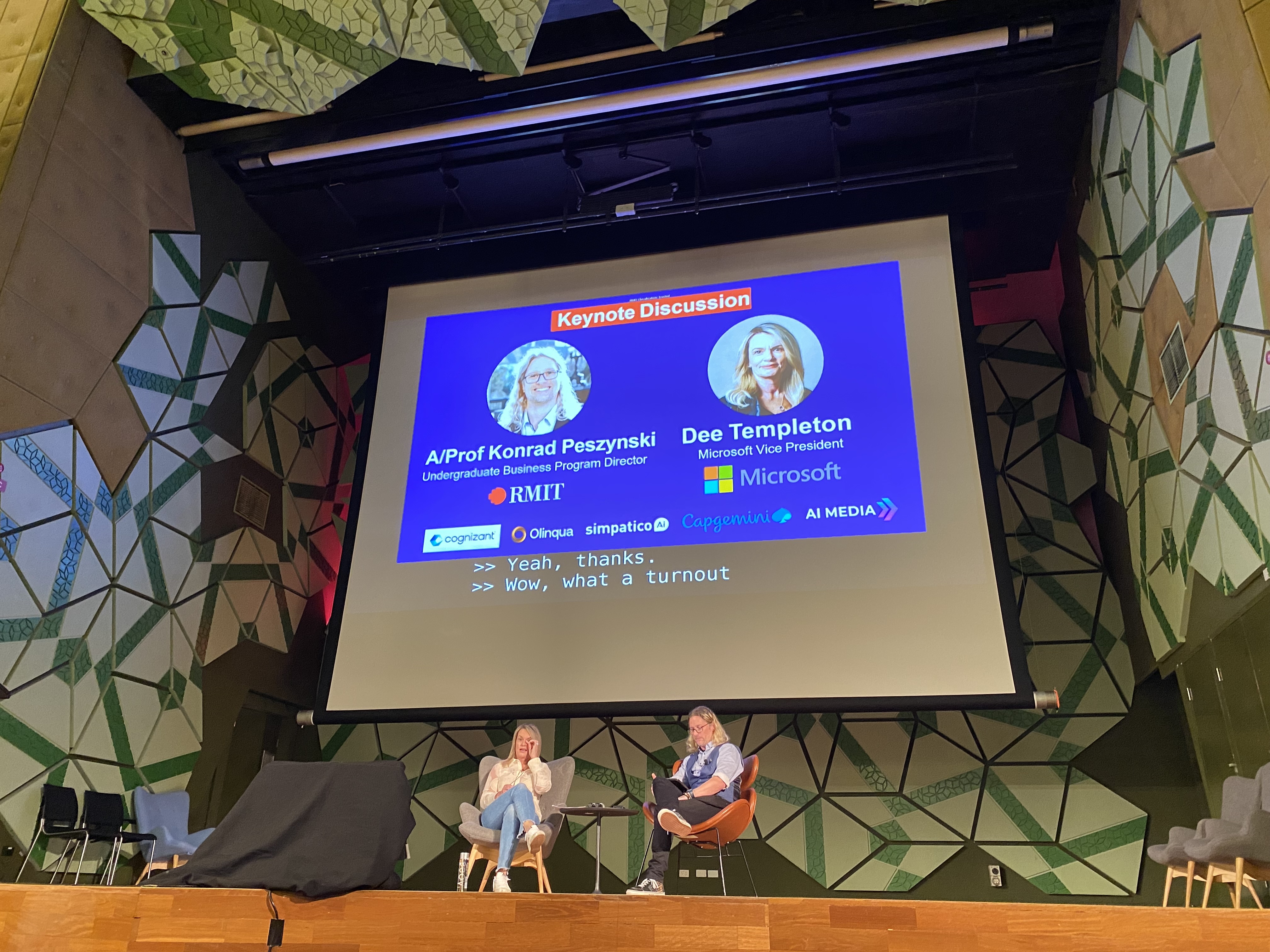 I was invited to join the panel at RMIT, with over 700 attendees coming to hear about the Future of Business with Ethical AI, with Dee Templeton as keynote speaker.